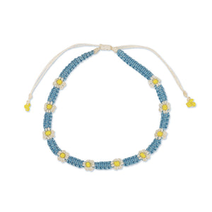 Wear the daisies around your ankle - pick your favorite color, get our new Macrame Daisy Wax Cord Anklet. This cute and colorful anklet is a great accessory to bring into your everyday Jewelry Collection. Adjustable for your perfect fit! Match it with our Daisy Necklace and Bracelet for the perfect look.