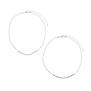 Two options to choose from: pastel pink - peach color or aqua blue shades. This delicate necklace can be combined with a bracelet and an anklet from the same collection. It is great for the upcoming spring. You can wear anytime and layer it with another jewelry item.