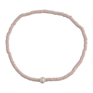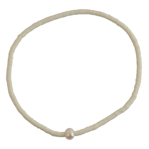 This ultra-chic style features one pearl on a strand of Fimo Clay beads. This best-selling anklet comes in 3 colors: White, Rose, Mint. Stretchy for the ideal fit. Pair it with our other best-selling anklets or wear alone....many compliments to come!